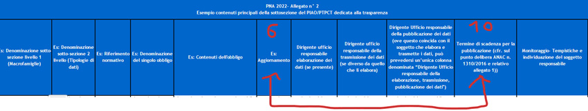 Ricordo, con l’occasione, e ribadisco - per l’ennesima volta dal 2022 - che il noto allegato al PIAO > PTPCT recante il file recante cd. IL QUADRO GENERALE DELLE PUBBLICAZIONI PRO TASPARENZA già dal PNA 2025 a pag. 37/135 + relativo Allegato 2 deve essere strutturato esattamente con le 11 colonne (e non 6 come un tempo) recanti esattamente per ciascuna pubblicazione le seguenti informazioni di estremo interesse massimamente per i cd. stakeholder (si pensi all’esercizio del diritto denominato accesso civico semplice!), con invito a non confondere l’informazione da rendere alla colonna 6^ con quella da rendere alla colonna 10^ (tra le due c’è molta differenza!!!) :